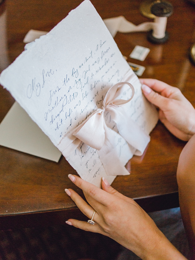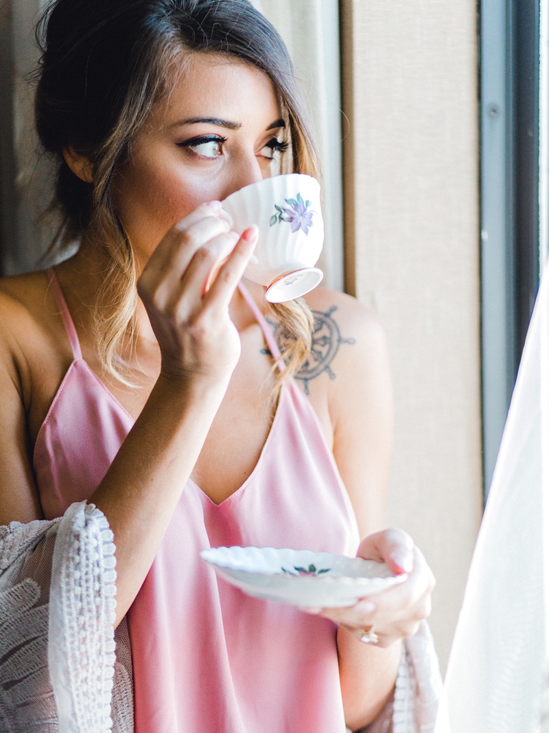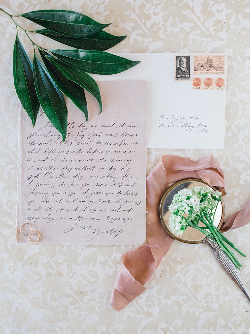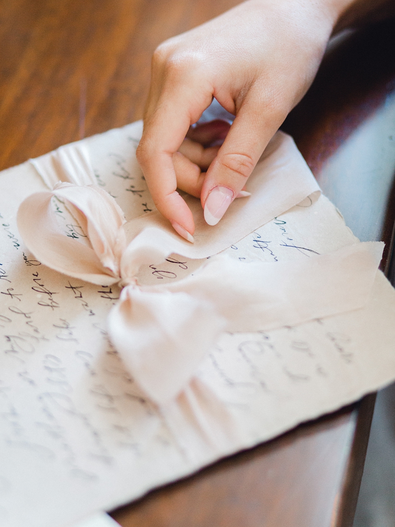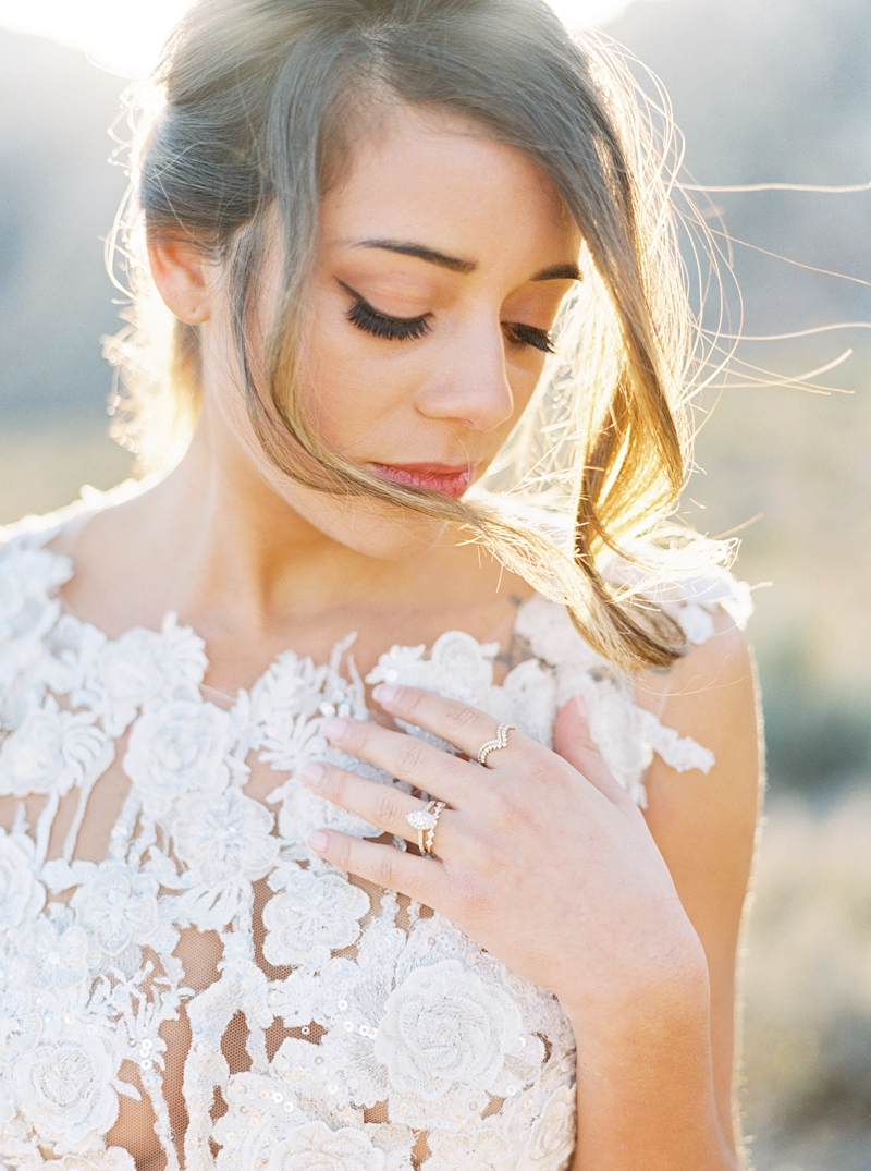 I have a gorgeous wedding inspiration shoot to share with you today featuring the stunning desert landscapes of Red Rock Canyon. We wanted these photos to really showcase the rugged beauty of the desert. Ambra of Query Events and I dreamed up a storyline to guide us and our other vendors throughout this shoot. The narrative begins with a bride getting ready in a hotel room on her wedding day, having a cup of tea and adding the finishing touches to a love letter addressed to her beloved. She gets in her car, checking her hair and makeup, then drives out to the desert for her bridal photo shoot in the “golden hour” before the sun goes down. The final scene shows her driving off into the sunset, on her way to marry the love of her life!