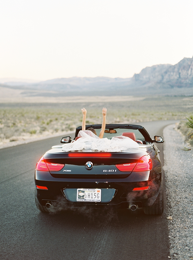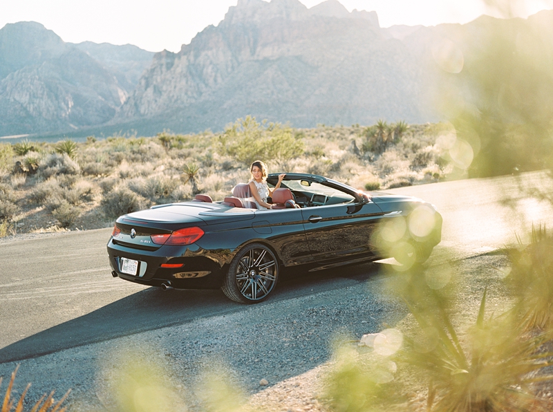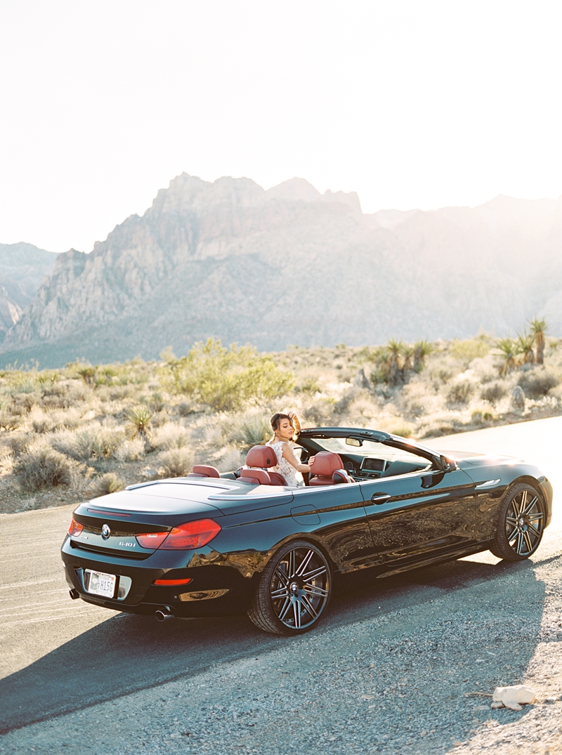 Photography: Callie Manion || Film Lab: PhotoVision || Planning + Design + Florals: Query Events || Location: Red Rock Canyon National Conservation Area || Gown: Bowties Bridal || Hair + Makeup: KCS Weddings || Beauty Concierge Service: Elwynn + Cass || Calligraphy + Stationery: Letter Love Studio || Jewelry: Wilson Diamonds || Cake: A White Cake || Models: Krysalee Reyes with TLC Modeling Agency || Sports Car: BMV 3 Series Convertible