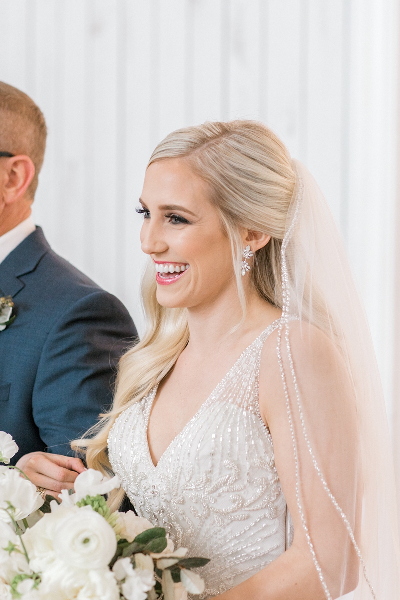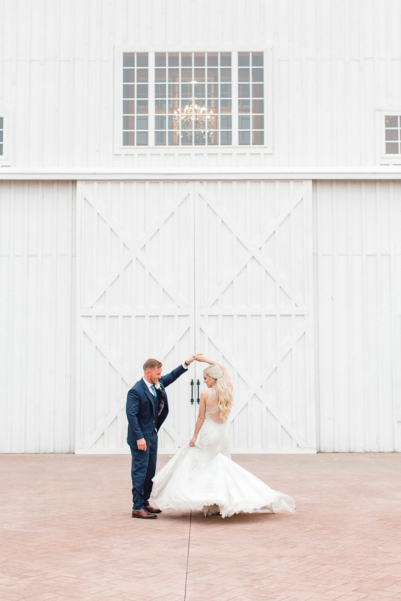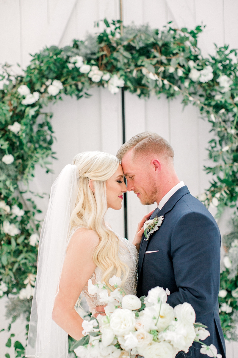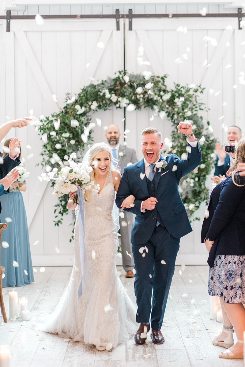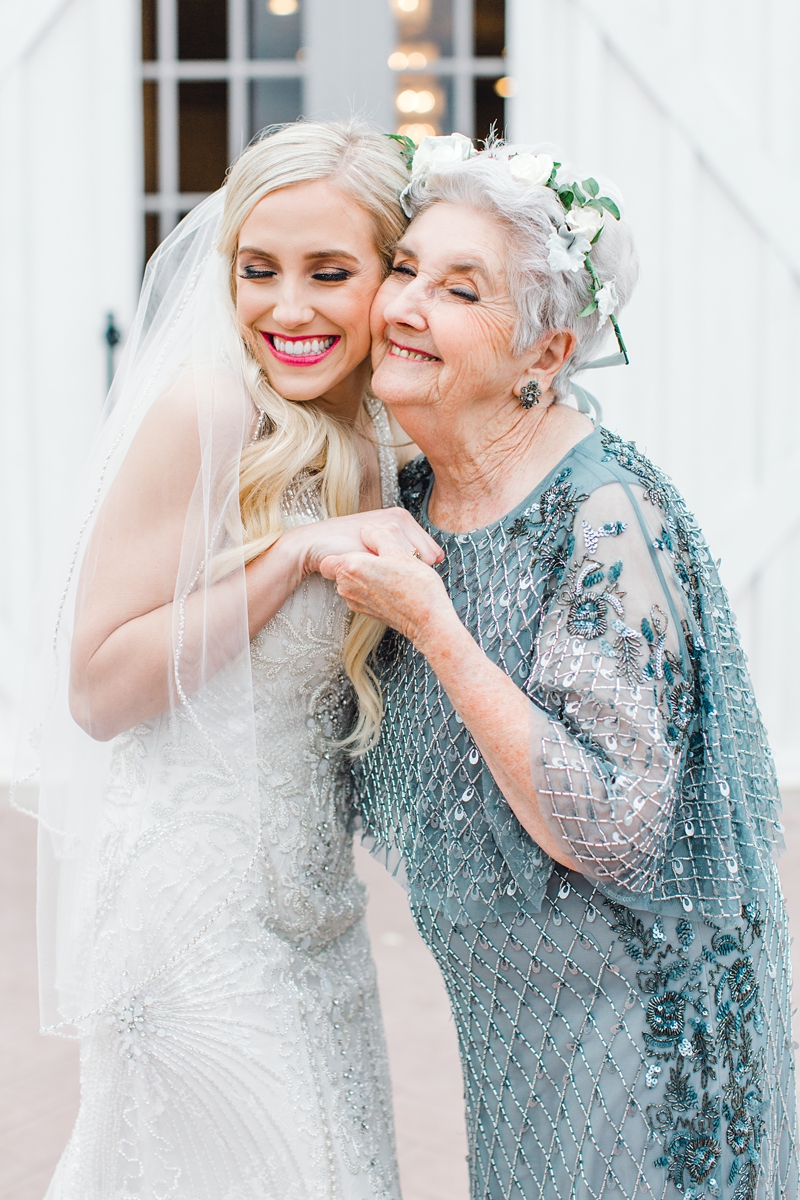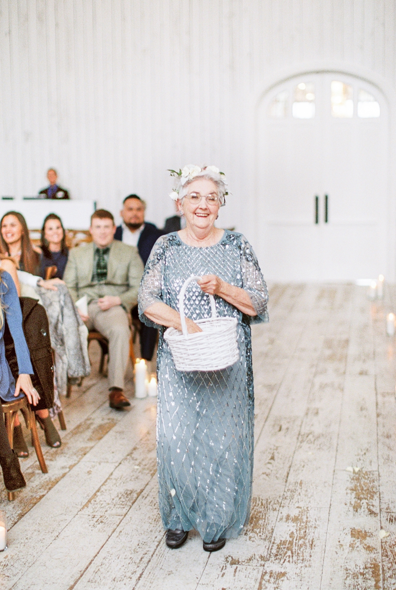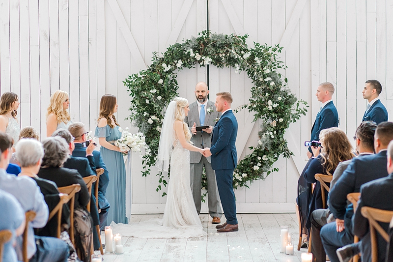 Chloe also received a beautiful golden ring as a gift from her grandmother to wear on her wedding day. Her sweet grandmother then preceded Chloe down the aisle as the flower girl, scattering rose petals all around. The entire celebration was a gorgeous event with a simple, neutral color palette accented with soft touches of blues and greens. I adored the small “something blue” details throughout the day. The flowers by Abelia Floral Studio were exquisite, especially the oversized wreath that served as the backdrop for the ceremony and sweetheart table. The White Sparrow Barn is one of my favorite venues in all of Texas, and I love how each couple is able to transform it with their own vision. The bride and groom even “exited” in a beautiful classic car, which came early enough for us to grab great photos with! Chloe worked closely with her planner, Karli Jones of Ivory & Vine Event Co., to create a wedding day that reflected the love she has for her “purpose partner” (as she and Austin call one another) and the commitment they were making to each other. Chloe has flawless taste and style, and everything came together so beautifully! I really enjoyed being there to capture these moments for this lovely couple.