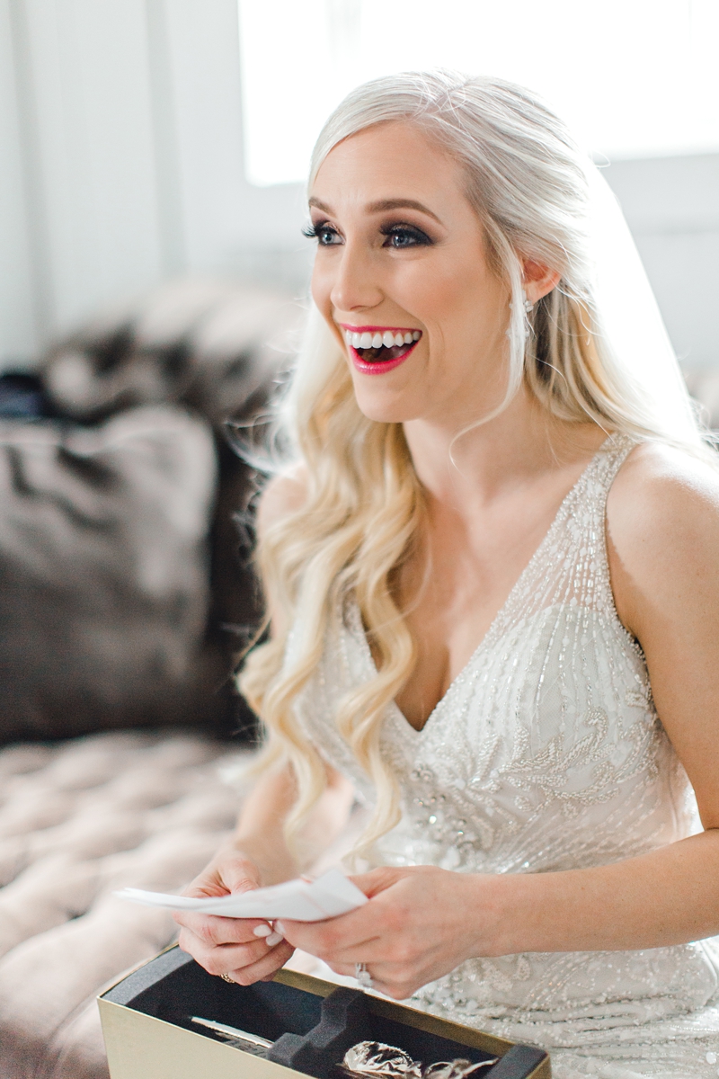 On their wedding day, Austin gifted Chloe with a “forever rose” that he had once given her which has been transformed and preserved in a painstaking, 65-step process known as electroforming. Precious metals are applied directly to the flower in many very light layers to maintain as much natural detail of the rose as possible. It was such a sweet, sentimental gift, and I loved watching Chloe’s eyes light up when she opened it.