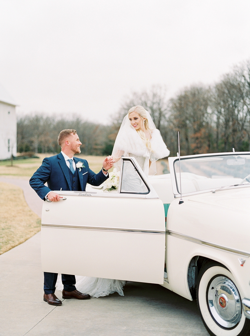 Photography: Callie Manion || Film Lab: PhotoVision || Venue: The White Sparrow || Planning & Design: Ivory & Vine Event Co || Florals: Abelia Floral Studio || Hair & Makeup: Megan Bechtel || Calligraphy & Paper Goods: Betty Lu Paperie || Wedding Dress Retailer: Happily Ever After Bridal || Bride’s Shoes: Bella Belle Shoes || Cake: Sugar Bee Sweets || Catering: Abuelo’s || Rentals: Beautiful Event Rentals || Classic Car: DFW Classic Car Rental || DJ: Le Force Entertainment || Preserved Rose: The Forever Rose